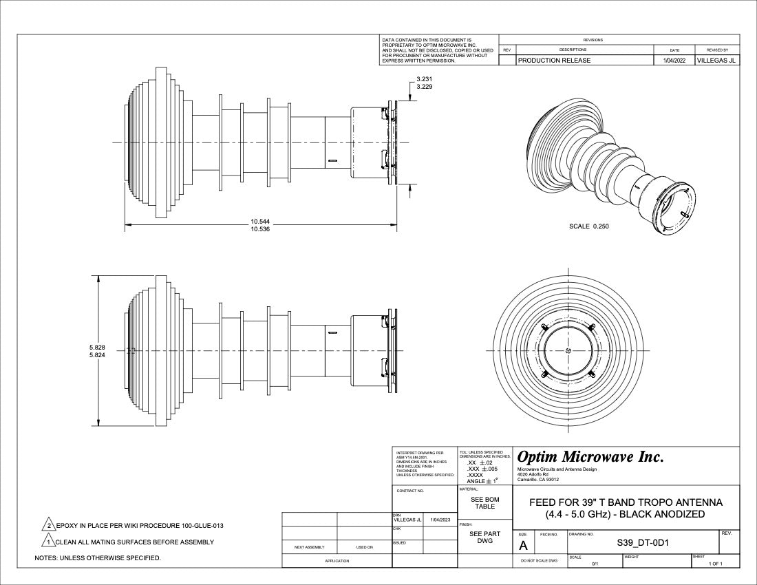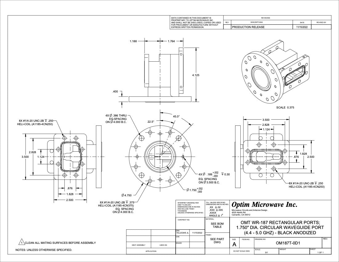 C Band or Troposcatter OMT WR-187 Rectangular Ports; 2.200" Dia Circular Waveguide Port 4.4-5.0 GHz (OM187T-0D1)