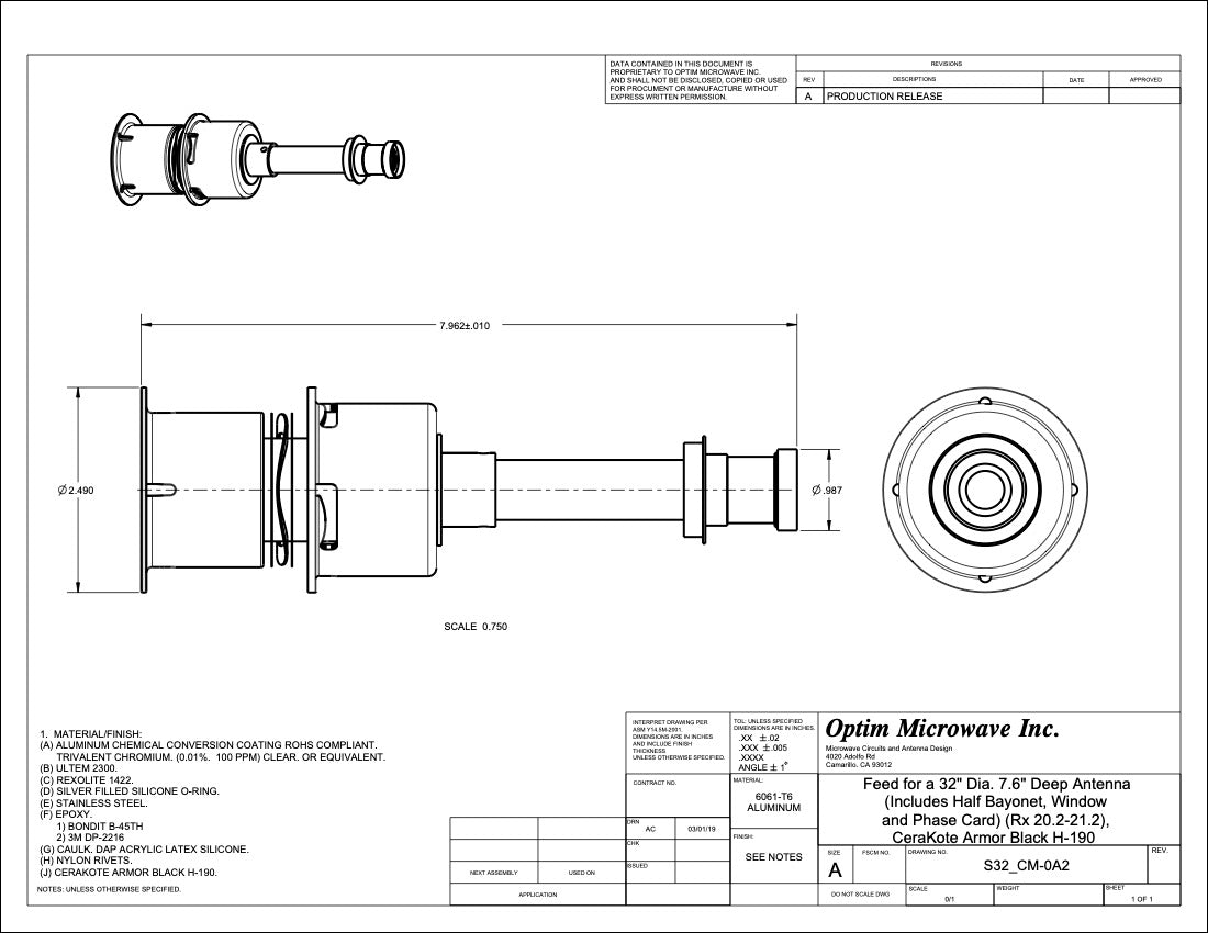 Feed for a 31.5" Dia 7.6" Deep Reflector