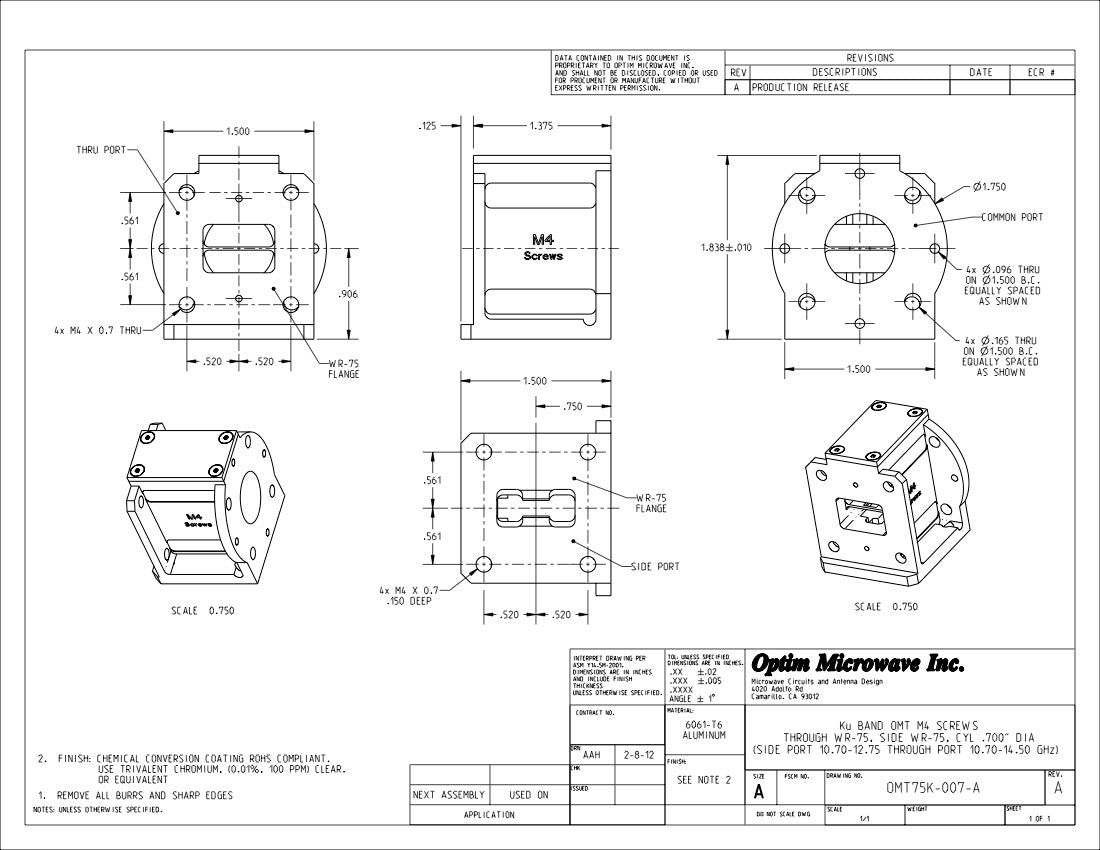 Ku-Band Tx/Rx OMT, WR-62 Side, WR-75 Both Ports, 0.7 In Circular Input (OMT75K-007)