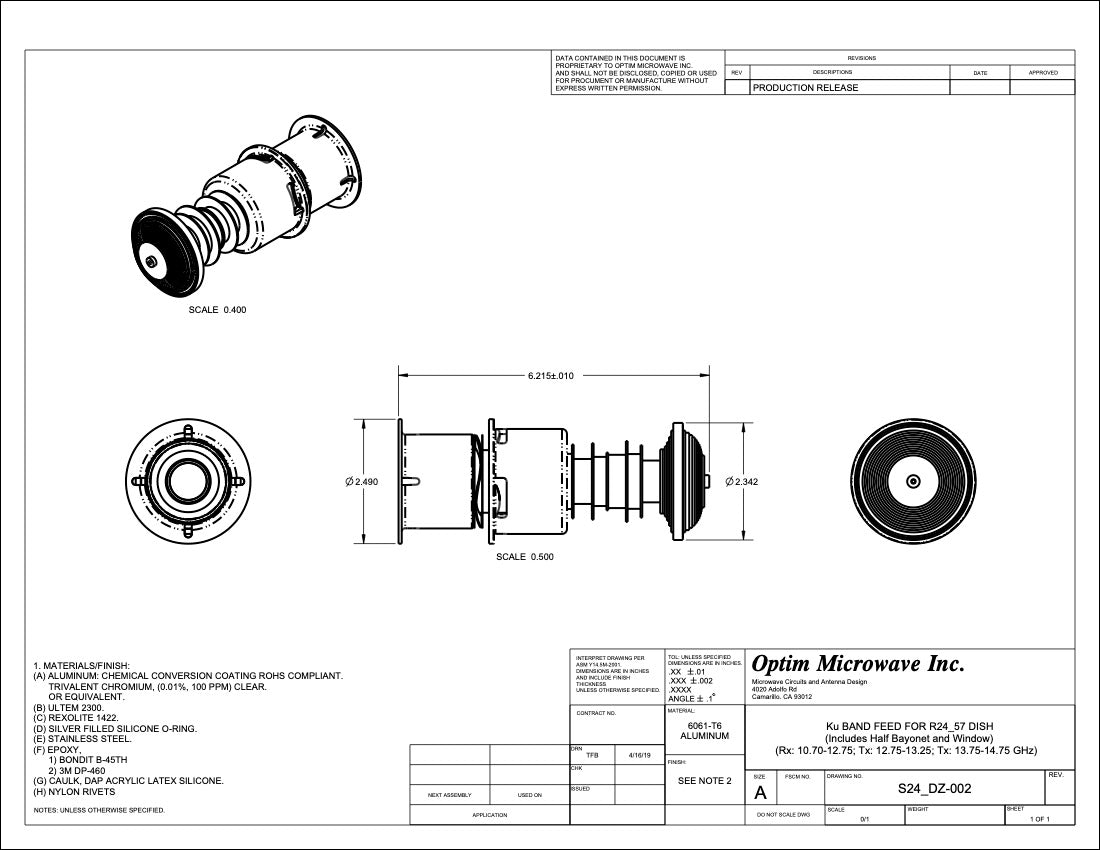 Linear Extended Ku Band Tx/Rx Reflector Antenna (Includes Half Bayonet, Window)