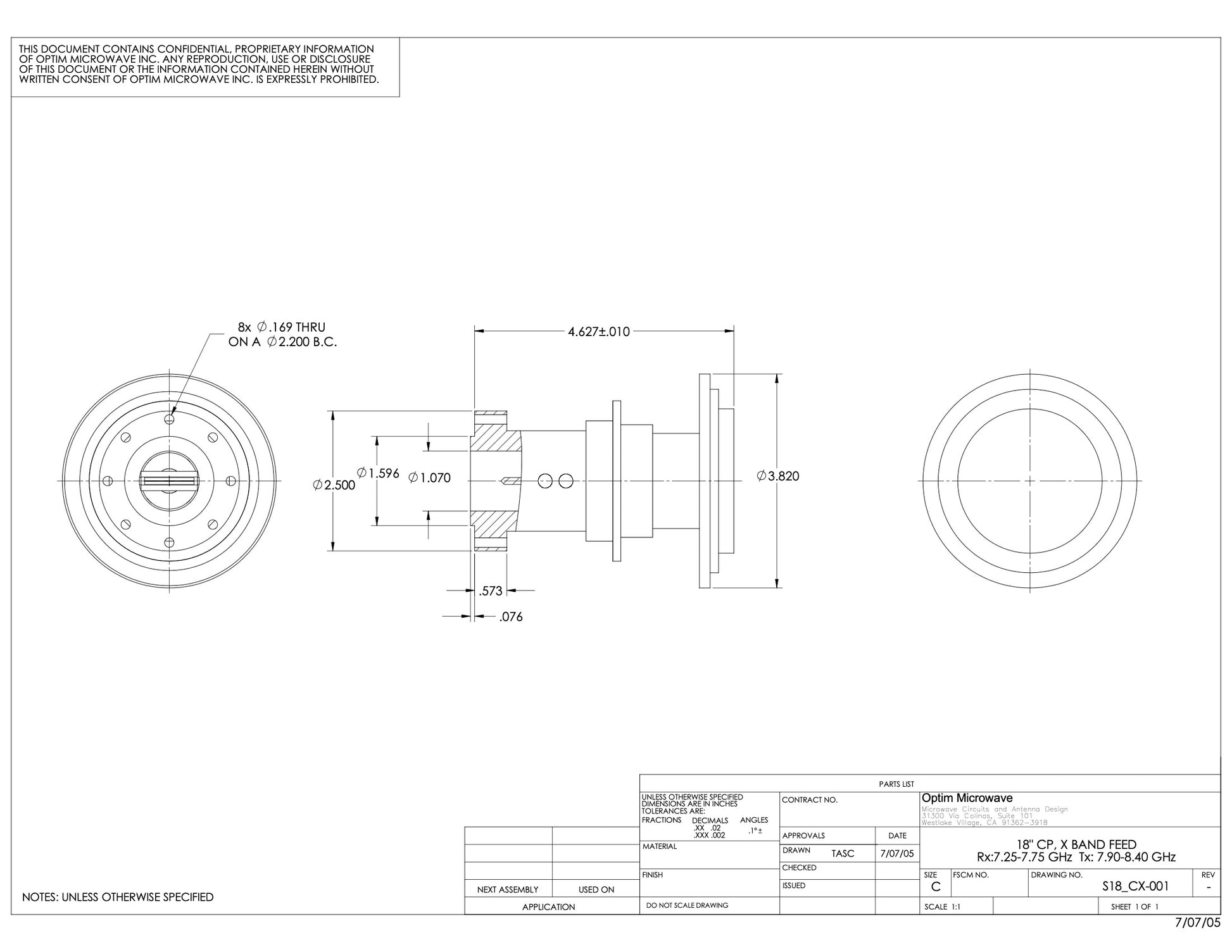 X-Band Feed for a 18" or 45cm Reflector Rx: 7.25-7.75 GHz; Tx: 7.9-8.4 GHz (S18_CX-001)