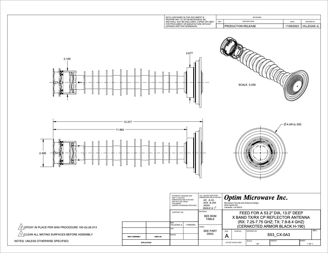 CP X-Band Tx/Rx Reflector Antenna (Includes Half Bayonet, Window and Phase Card)