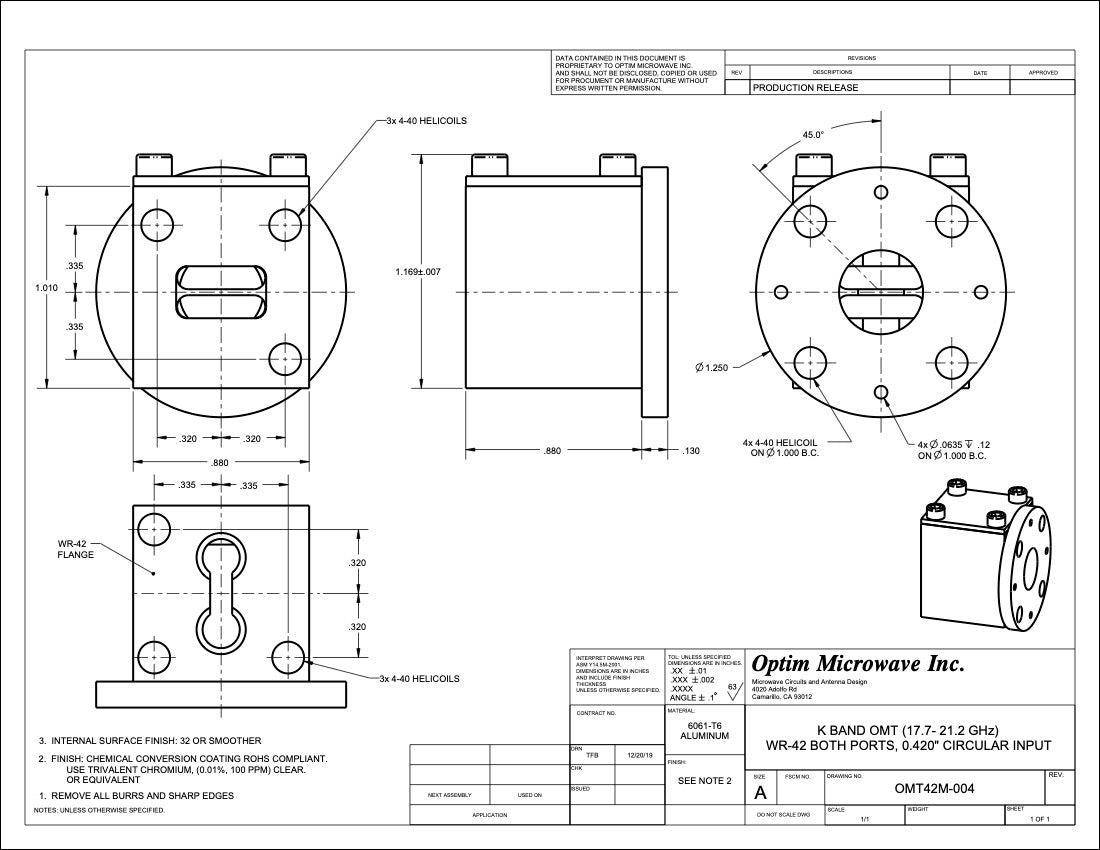 Ka-Band OMT 17.96 - 21.2 GHz (OMT42M-004)