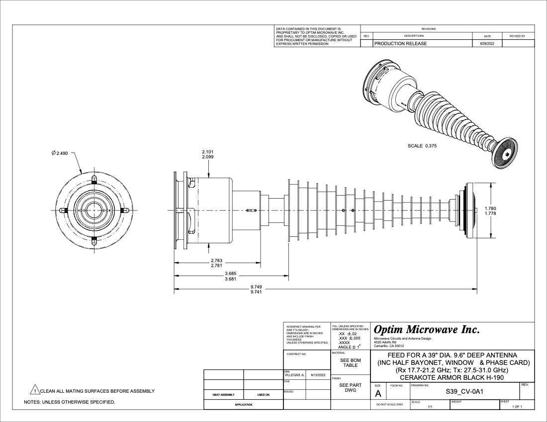 Feed for a 39.4" Dia 9.6" Deep Reflector
