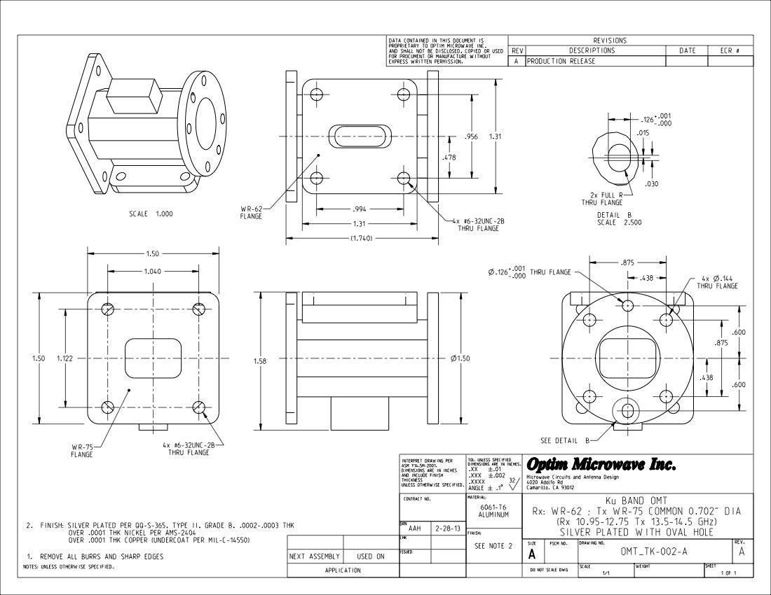 Ku-Band Tx/Rx OMT, WR-62 Side, WR-75 Through, 0.622" Circular Input (OMT_TK-002)