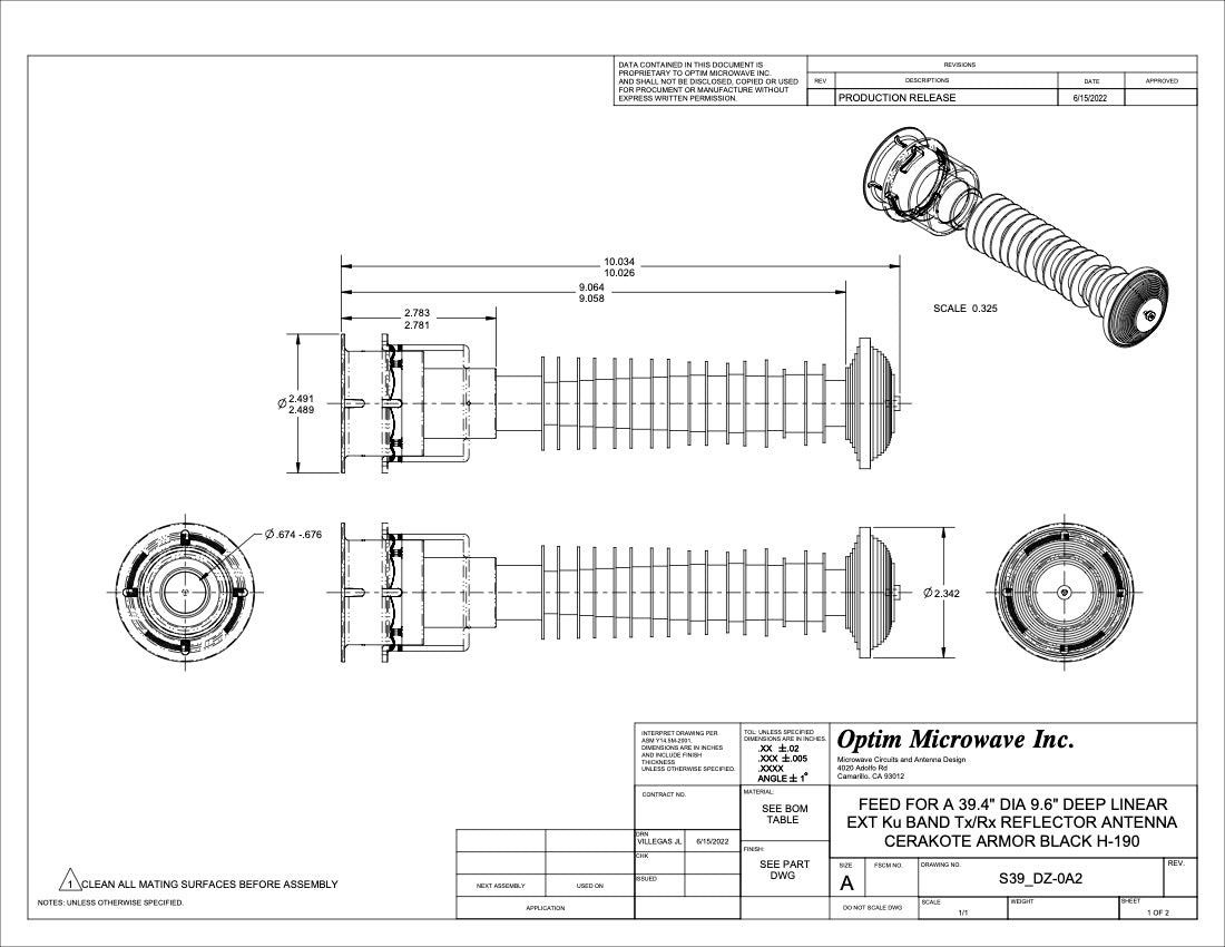 Feed for a 39.4" Dia 9.6" Deep Reflector