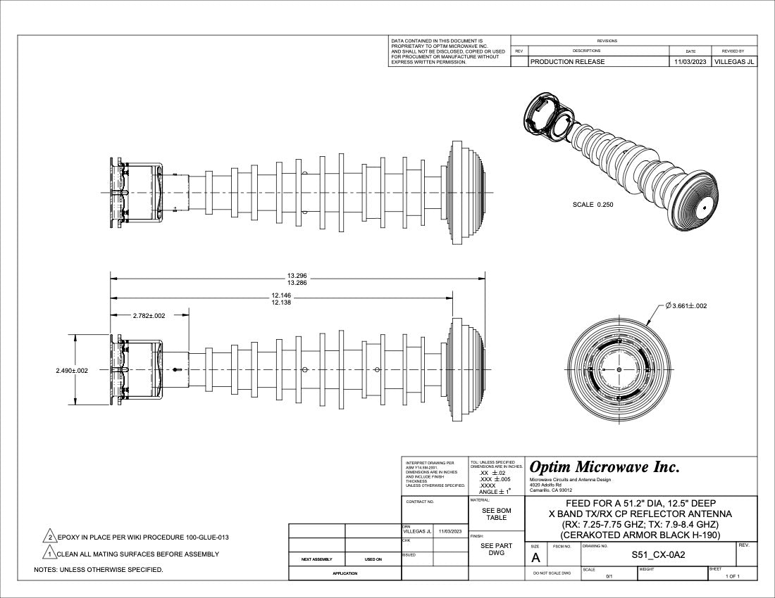 Feed for a 51.2" or 130cm Diameter Reflector